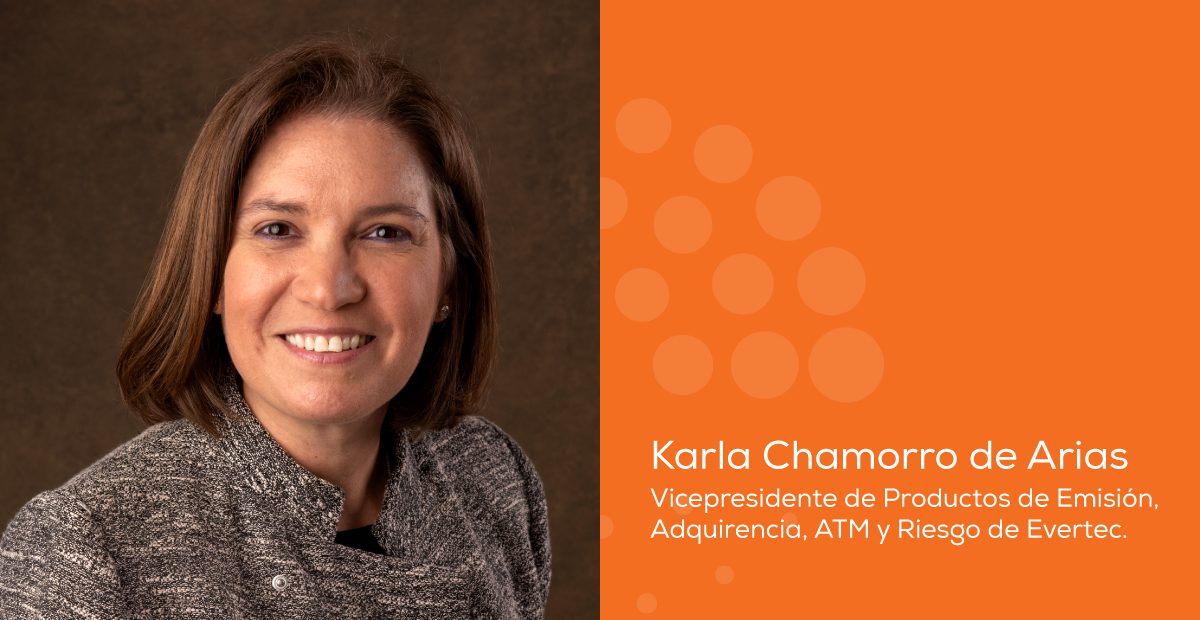 KARLA CHAMORRO DE ARIAS es la vicepresidente de Productos de Emisión, Adquirencia, ATM y Riesgo de Evertec....