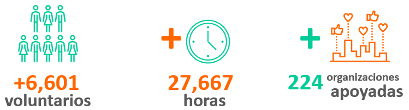 Participaron 787 voluntarios | Donamos 2,967 horas | Apoyamos a 24 organizaciones sin fines de lucro | 9 países