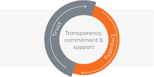As shown in the diagram, trust and empathy are the foundation that hold and gives life to three of the daily attributes that are most important to the area’s success: Transparency, Commitment, and Support.