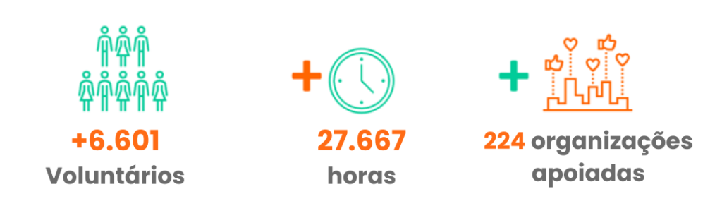 787 voluntários | 2.967 horas doadas | Apoio a 24 organizações sem fins lucrativos | 9 países