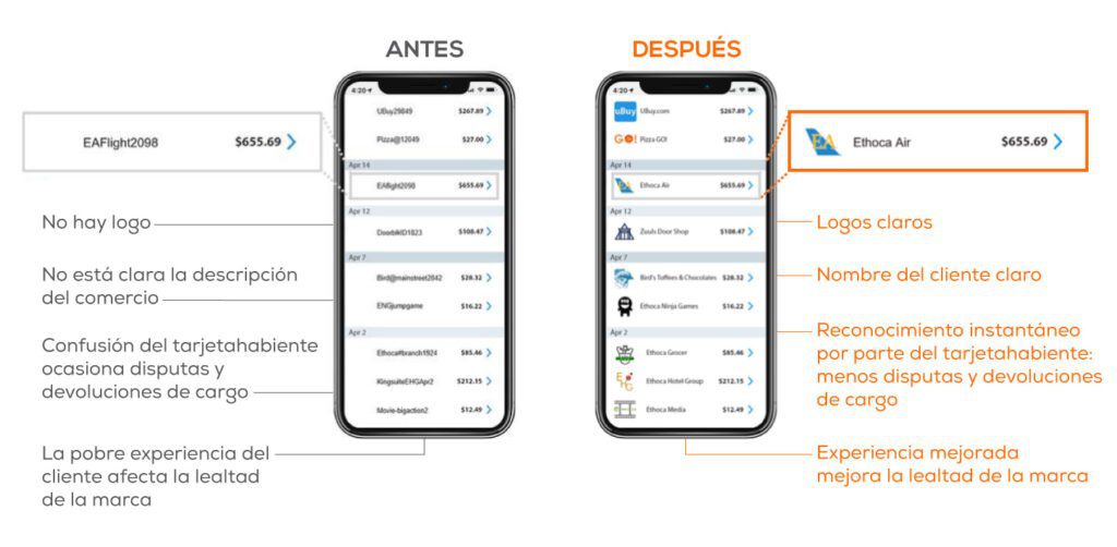 Al compartir el logo de tu negocio con Mastercard, tus clientes se benefician de una mayor transparencia al realizar transacciones, se reducen las disputas de cobro de los titulares de tarjetas, y tu negocio se beneficia de una mayor presencia de marca cada vez que el titular de la tarjeta ve una compra. Compartir tu logo digital con Mastercard no conlleva un cargo adicional.